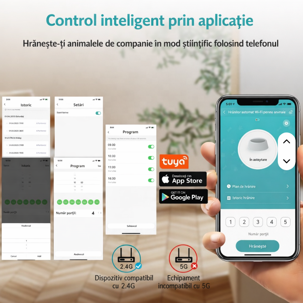 Controlezi totul direct din telefon: programezi orele de hrănire, ajustezi porțiile, vezi live prin cameră și primești notificări instant. Roboto combină tehnologia inteligentă cu materiale premium, oferind o soluție sigură, silențioasă și fiabilă pentru îngrijirea zilnică a animalului tău.